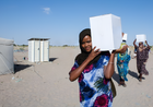 Raised Latrine: Above-ground twin cubicle with 2,000 L waste tank for use where pits aren’t possible.